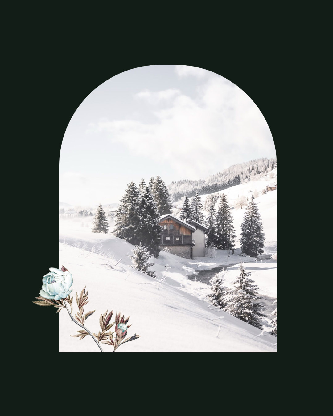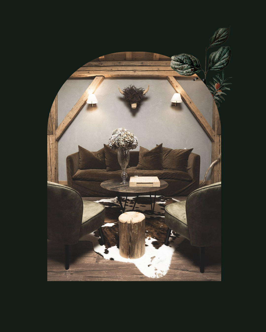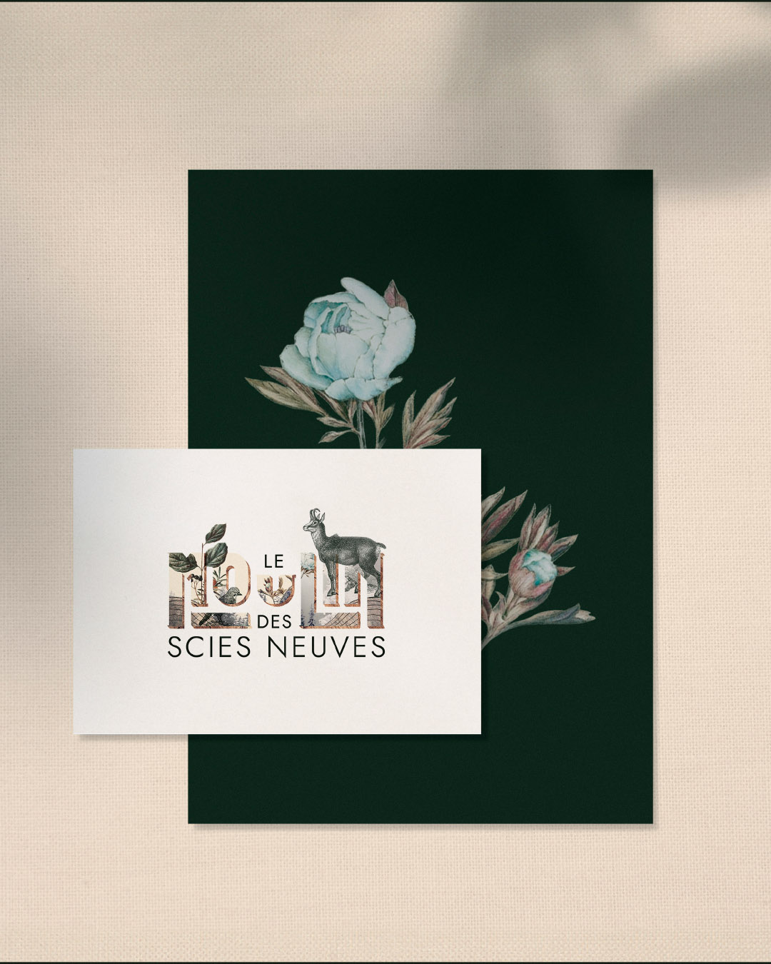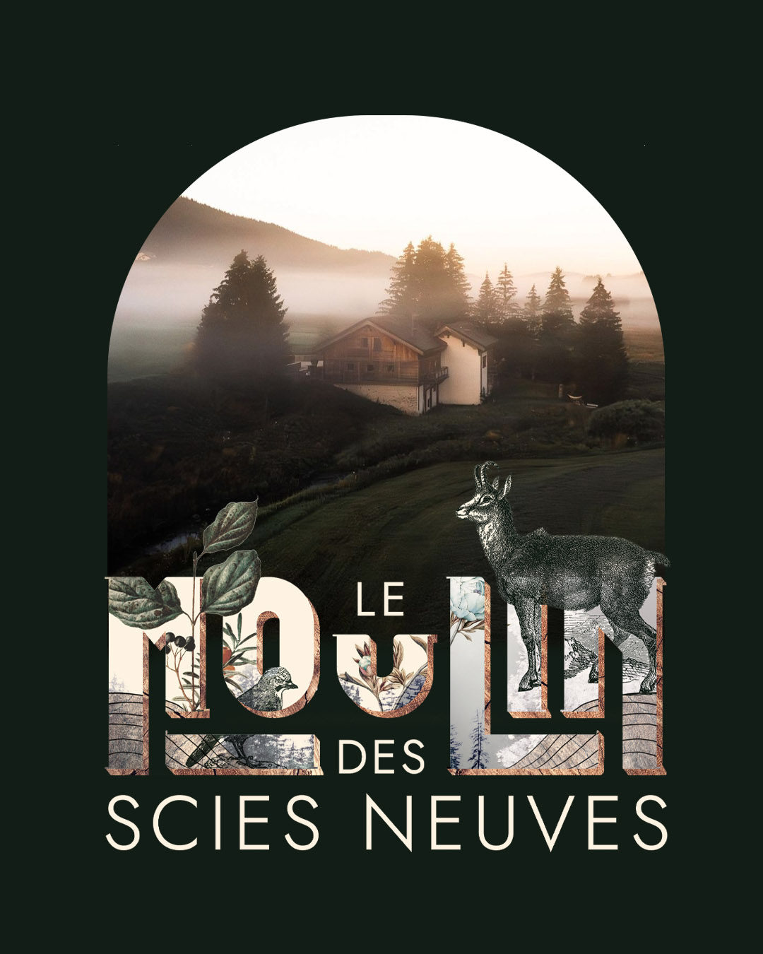 La technique du collage qui s’échappe du logo s’inspire donc de la nature foisonnante qui entoure ce chalet isolé en montagne jurassienne.